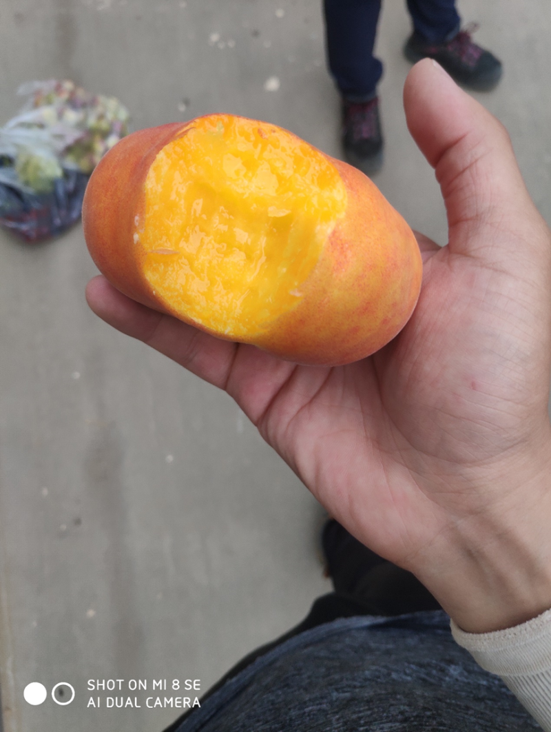 分别时,高师姐家里赠送的桃子——形状奇特,形似一个小南瓜,听师姐说她们这边叫蟠桃