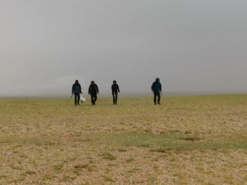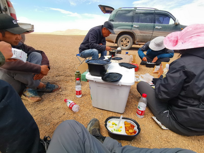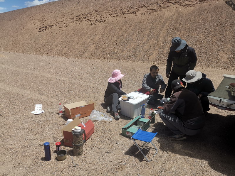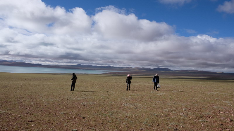 10:00 终于到了科考目的地,我们就开始了一天的科考调查工作。茫茫无人区,天地间仅我们科考队员几个人,顿觉我们的渺小。