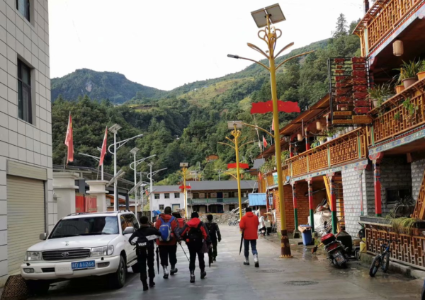 完成了陈塘沟的考察任务,我们立即投入到嘎玛沟考察。这一段考察工作更是艰辛异常。嘎玛沟全长50余公里,出口位于曲当乡,从曲当乡有20余公里入沟便道可以通行车辆。考察队决定从陈塘镇出发,背负野外食宿装备徒步深入30余公里嘎玛沟深处考察,考察车辆则前往曲当乡,沿山间道路入沟,等待接应科考队员,进行下一阶段20余公里的考察。