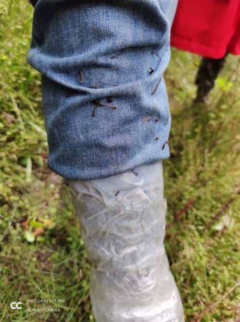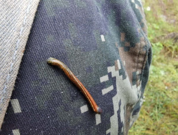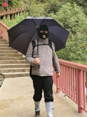 嘎玛沟在当地被称为“蚂蟥沟”因山路崎岖,蚂蟥成灾,当地居民很少有人穿越,时常有家畜入沟而被蚂蟥叮咬致死。有了陈塘沟防蚂蟥的经验,队员们一大早利用胶带打了绑腿,带上可以防护的所有装备整装出。科考队雇请的两位司机师傅自告奋勇背负一部分炊具和食物送我们入沟。背负沉重的行囊徒步在崎岖的山路,异常的耗费体力,沿途蚂蟥成灾,出发前所做的防护几乎没有作用,行走不到一个小时,每个队员从头到脚都被蚂蟥叮咬了几十处,汗水与蚂蟥叮咬后的血水不断地从队员们的头上,身上渗出。