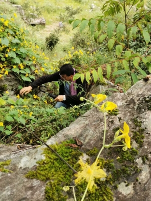 为了加快进度,我们存放了非必要负重物,轻装前进,终于在下午三点左右到达了考察目样点,见到了“日思夜想”的“甲蒂”、“旺拉”以及多种珍稀濒危的兰科植物。