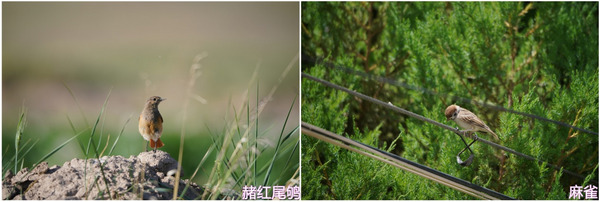 第二天小队进行民乐到张掖的样线调查,以前只知道麻雀、喜鹊、老鹰的我,在师兄们的帮助下认识了一些鸟类,红翅旋壁雀、赭红尾鸲、戴胜、金翅雀、理氏鹨、山斑鸠、红隼……这天小队面临着35℃的高温,让长久以来习惯了夏都清凉的我们有点受不了。在微风吹来的阵阵热浪中,小队认真地完成了工作。两位师兄认真负责的工作态度以及专业的业务能力让我赞叹,我暗暗下决心也要成为师兄这样的人。