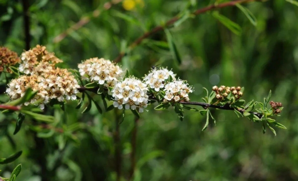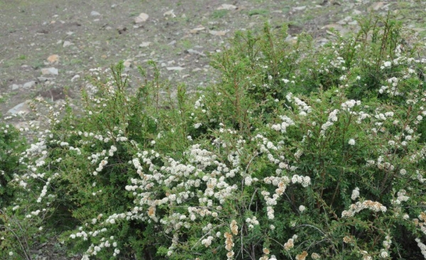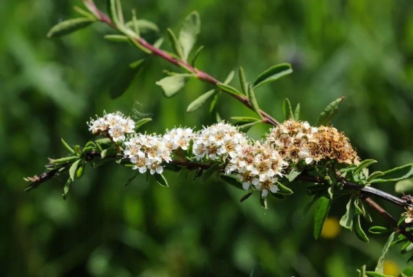 高山绣线菊,蔷薇科Rosaceae绣线菊属Spiraea灌木,生于海拔2000-4000米向阳坡地或灌丛中,是青藏高原上常见的多年生落叶灌木,是高寒灌丛的主要建群种,在保持水土、涵养水源等方面有重要的生态功能,对维持高寒生态系统的稳定具有重要作用。