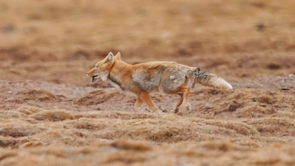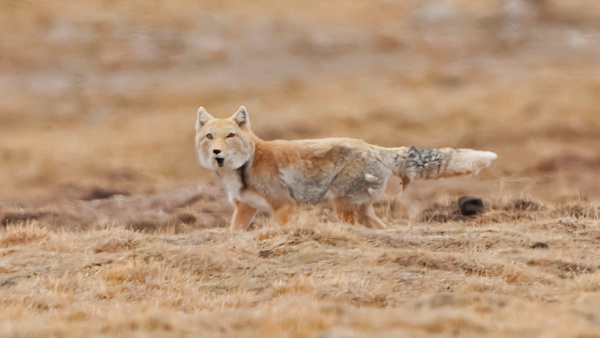 在西蒙古族藏族自治州五道梁109国道曲麻河流域:我们有幸拍摄到了一只下颌骨折的藏狐。我猜可能是在之前捕食高原鼠兔的过程中撞到了洞穴种的石头所致。不知道对它之后的捕食和生存有没有影响,希望它能坚强地活下去,一切顺利吧。