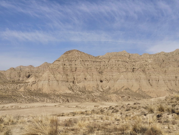 在海南州共和县龙羊峡镇附近:经过长年累月的雨水冲刷和风沙侵蚀,裸露出来了由砾岩,砂岩等组成的层状岩石层,孕育了丹霞地貌的雏形。我相信再过若干年,这里一定能形成壮观的丹霞风貌。