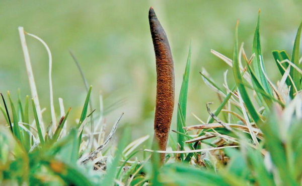 冬虫夏草是线虫草科、线虫草属真菌。子座一年生,棍棒状,新鲜时革质,基部浅黄色,中部黄褐色,顶部黑褐色,长可达6cm,直径可达2mm;子座菌丝无色,厚壁,频繁分隔,偶尔分枝;子囊孢子线状,无色,薄壁,成熟后多分隔,大小为(118-)120-262(-270)um×(4.5-)5-6(-6.5)um。该菌可以与蝙蝠蛾幼虫形成复合体。