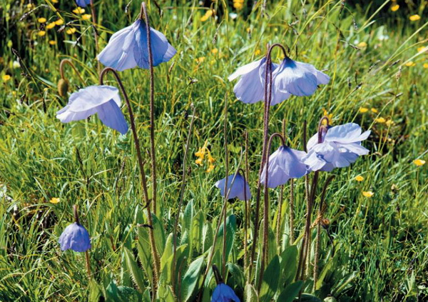 多年生草本,高30 - 50cm,基部盖以宿存的叶基,其上密被淡黄色或棕褐色、具密短分枝的硬毛。主根不明显,呈须根状。叶均基生,呈莲座状;叶片倒卵形至披针形,长2-9cm,宽1-3cm,全缘,两面密被淡黄色或棕褐色硬毛;叶柄长3 -6cm。花葶1-3,被黄棕色,具密短分枝、反折的硬毛。花下垂,单生于花葶上;花瓣4-6,淡蓝色或紫色,倒卵形或近圆形,长3 - 4cm,宽2.5-3.7cm;花丝丝状;子房近球形、卵球形或长圆形,密被棕黄色或淡黄色具分枝的刚毛。辙果椭圆形或长圆状椭圆形,长1.5 - 2.5cm,密被棕黄色紧贴的硬毛。