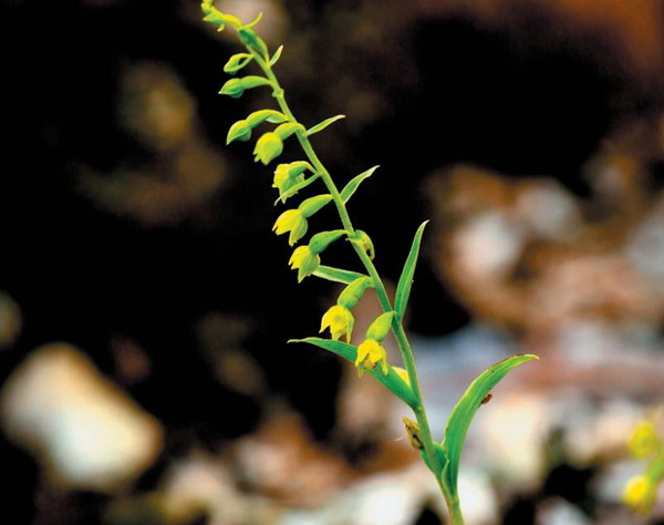地生兰,高20-70cm;根状茎粗短。茎上部被短柔毛,下部无毛,具2-3枚鳞片状鞘。叶4-7枚,互生;叶片卵圆形、卵形至椭圆状披针形。总状花序长10-30cm,通常具3-40朵花;花绿色或淡紫色,下垂,较小;花瓣椭圆形,长6-8mm,宽3-4mm,先端急尖或钝;唇瓣长6-8mm,中部明显缢缩。花期7月,果期9月。