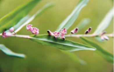 多年生草本。高15-50cm。根茎节间长,节膨大,但不为联珠状,粗大的节上常有芽。茎直立,直径2-4mm。叶生于茎上部或中部以上,茎下部无叶;叶3枚轮生,兼有对生或互生,或全为对生和互生,长圆状披针形、披针形或线形,长4.5-10cm,宽5-18mm,先端急尖或渐尖,不卷曲,边缘不外卷,基部渐狭成短柄。花多单生或2朵成花序,总花梗或花梗细,长3-13mm;花紫红色或淡紫色,长8-10mm,筒部直径2-3mm,裂片长2-4mm,先端具短毛;雄蕊与筒部等高;子房长约3mm,与花柱等长。浆果球形,红色,直径6-10mm。花果期5-9月。