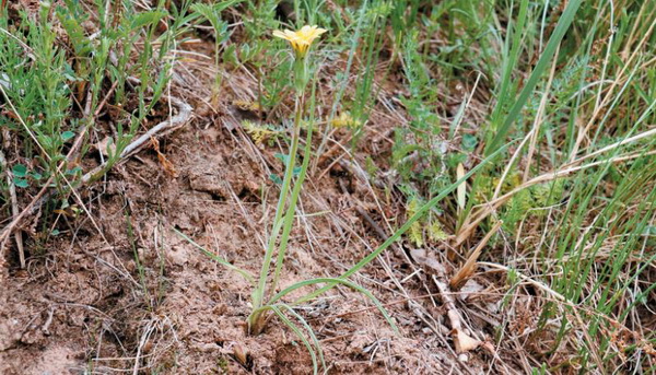 多年生草本,高5-45cm。主根粗,肉质,颈部被密的残叶鞘,后呈纤维状。茎单生或多至10个,丛生,直立,不分枝,无毛。基生叶线状披针形至披针形,长至20cm,宽0.3-1cm,先端尾状渐尖,边缘平展或皱波状,两面无毛或边缘中下部被白色蛛丝状毛,基部扩大呈鞘状;茎生叶狭披针形,向上渐小,呈鳞片状,基部扩大,半抱茎。头状花序单生茎端;总苞筒状或初时呈钟状筒形,长2.5-3.5cm,直径达1.5cm;总苞片4-5层,不等长,外层小,卵形或卵状三角形,长5-7mm,先端尖,内层狭披针形,先端渐尖,无毛;小花全部舌状,黄色,长1.5-2cm。瘦果圆柱形,长约1.5cm,肋上有刺状突起;冠状羽毛,淡黄色。花果期5-7月。