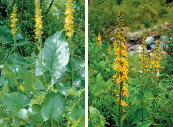 多年生草本,高25-50cm。丛生叶与基下部叶具柄,柄长4-20cm,具狭翅,翅全缘或有齿,基部鞘状,叶片箭形或长圆状箭形,长2-20cm,基部宽达20cm,弯缺宽,先端钝或急尖,边缘具小齿,上面光滑,下面被蛛丝状毛或脱毛,茎中上部叶较小,同形,具鞘;最上部叶狭披针形。总状花序长约6.5cm;苞片卵状披针形至狭披针形,头状花序多数,辐射状;总苞钟形或狭钟形,长7-10mm,宽4-8mm,总苞片7-10。长圆形或披针形,先端急尖或渐尖,背部光滑,舌状花5-9,黄色,舌片长圆形,长7-14mm;管状花黄色,长7-10mm。瘦果长2.5-6mm,冠毛白色,长7-8mm。花果期7-9月。