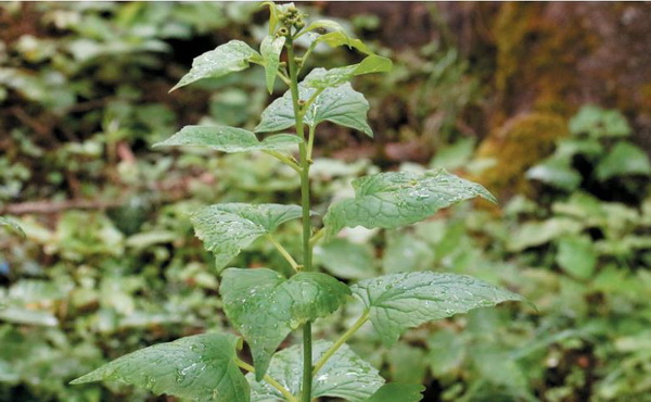 多年生草本,高达1m。根状茎粗。茎直立,被蛛丝状毛,后脱毛,不分枝。茎下部叶在花期枯萎;中上部叶卵状三角形或广三角形,长4.5-12cm,宽2.5-10cm,先端渐尖或急尖,边缘有不整齐的,具小尖头的齿,基部平截或稍心形,上面无毛,下面被白色蛛丝状毛,叶质薄,叶脉掌状,3-5,在两面均明显。头状花序盘状,多数,在茎端排列成圆锥状总状花序;花序梗细,有小苞片;总苞狭筒形,长约10mm,宽至2mm;总苞片3,长圆形,宽约1mm,先端钝;小花管状,通常3个,黄色,长约10mm,檐部5裂,裂片披针形。瘦果光滑;冠毛白色,与花冠等长,花果期7-9月。