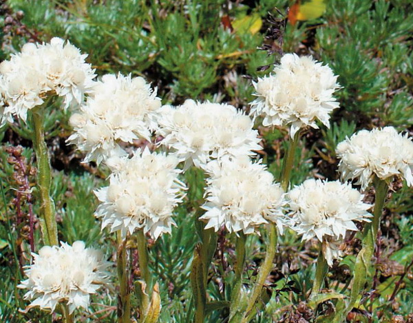 多年生草本,高3-30cm。根状茎细长,有分枝。基直立,上部被白色蛛丝状毛和头状具柄腺体,下部常脱毛。莲座丛叶和茎下部叶匙形、匙状长圆形或线状匙形,长0.7-10cm,宽0.4 -1.4cm,先端钝,基部渐狭成具宽翅柄或近无柄;中上部叶直立,贴生,线状披针形或披针形,稀狭长圆形,常较下部叶小,先端渐尖,有褐色尖头,有时急尖,基部沿茎下延成翅;全部叶两面被头状具柄腺体,仅边缘具蛛丝状棉毛,有时两面有蛛丝状毛,具1-3条脉。头状花序大而少,在茎端密集成复伞房状;花序梗短;总苞半球形或宽钟形,长8-10mm,宽至8mm;总苞片上部白色,基部黑褐色,波绵毛,约5层,卵形至长圆披针形,先端尖;小花长约5mm。瘦果具乳突。花果期7-9月。
