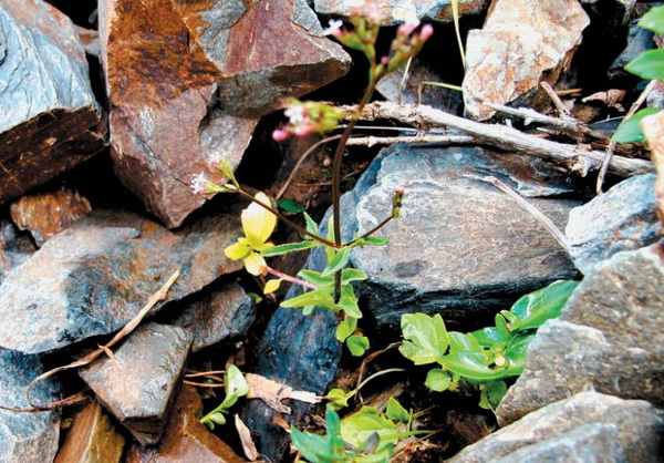 多年生草本,高5-15cm,植株被疏短毛或仅节部有毛;根茎短而不明显,根簇生,匍匐枝线状,具鳞片状叶。茎基部叶椭圆形至宽卵形,全缘或有波状疏齿,长0.5-1.2cm,宽0.5-1cm,叶柄长约1cm。茎生叶2-3对,3裂或羽状5裂,顶裂片卵圆至宽椭圆形,长0.8-1.5cm,宽0.5-1cm,侧裂片极小;叶柄长1-1.2cm,渐向上柄渐短而至无柄,叶及叶柄边缘有时有缘毛,叶背沿脉有疏毛。密集的头状聚伞花序顶生,直径1-1.5cm,果时稍增大。苞片近膜质,线状披针形至披针形,长约3mm,背面有疏毛,边缘具缘毛。花淡红色,花冠长3-3.5 mm,花冠裂片宽椭圆形,长 1-1.5mm,喉部有长柔毛或无,雌雄蕊几与花冠等长。果实长卵形至长椭圆形,具毛或光秃。花果期7-9月。