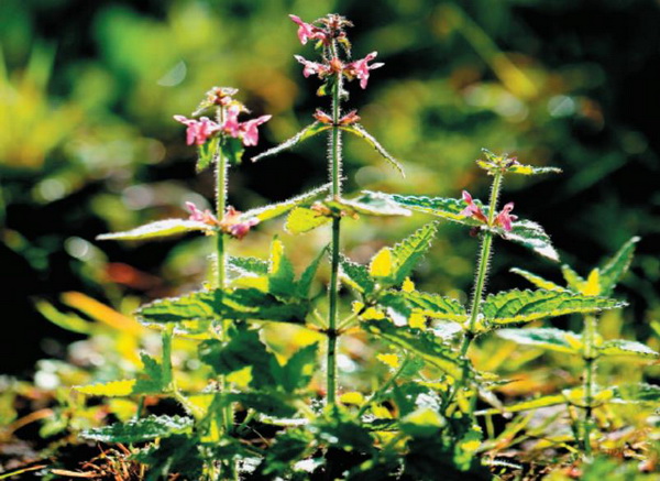 多年生草本,高 10~50cm。根茎横走,末端膨大呈念珠状块茎,白色。茎直 立,四棱形,被疏的硬毛和腺状柔毛,不分枝或多分枝。叶对生,叶片卵状披针形或卵状长 圆形,长 1.3~9cm,宽 0.4~3cm,先端急尖,边缘具圆齿,基部近圆形或平截,两面疏被硬毛; 叶柄长至 1.5cm,被硬毛。顶生穗状花序,有间断,长至 23cm。花冠紫红色,下唇有紫斑, 长 10~11mm,外面有微柔毛,内面下部有毛环,二唇形,上唇直立,全缘,下唇 3 裂,中裂 片大,雄蕊 4,上升,前对较长,花丝有毛,药室叉开。小坚果卵形,长约 2mm,黑色,光滑。 花果期 7~8 月。