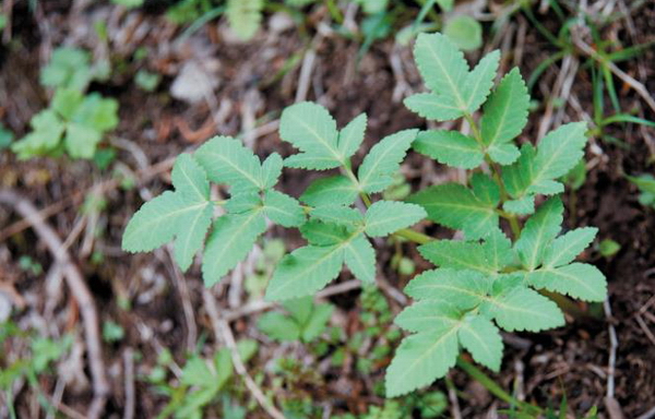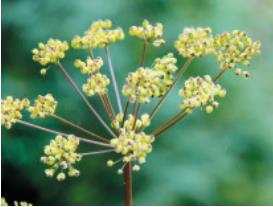 多年生草本,高80-180cm。有发达的根茎,基部多残留叶鞘。茎直立,少分枝,圆柱形,中空,有纵直细条纹,带紫色。基生叶及茎下部叶有柄,柄长1-22cm,下部有抱茎的叶鞘;叶大,三出式2-3回羽状复叶,一回羽片2-3对,有短柄或近无柄,末回裂片无柄或有短柄,长圆状卵形至卵状披针形,长3-8cm,宽1-3cm,边缘有粗锯齿;茎上部叶少数,仅有3小叶,叶鞘发达,膜质。复伞形花序顶生和腋生,直径5-14cm,花序梗长5-25cm;总苞片1-3,线状披针形,长约5mm,早落;小总苞片4-5,线形,长3-4mm;花柄长-0.5-1cm;萼齿卵状三角形;花瓣淡黄色,倒卵形,长1-1.5mm,顶端渐尖或钝,内折;花柱2,短,花柱基隆起。果近圆形,长5mm,宽4mm,背腹稍压扁,背棱、中棱及侧棱均扩展成翅,但发展不均匀,翅宽约1mm。花期7-8月,果期8-9月。
