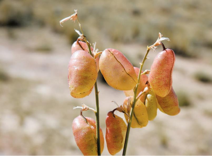 多年生草本,高30-60cm。根粗壮,深长。茎直、灰绿色,具纵条棱,分枝。奇数羽状复叶,长8-15cm,托叶披针形,长约2mm,小叶3-21,椭圆形或倒卵状椭圆形,长5-15mm,宽3-8mm,先端钝或微凹,有小尖头,基部圆形至宽楔形,全缘,上面无毛,下面被伏生短柔毛。总状花序腋生,较叶长,长10-20cm,总花梗密被灰白色短毛,具数花至10多花,苞片披针形,长约1-2mm,花梗长2-3mm,被短毛,基部生1苞片,上部有2小苞片,花萼杯状钟形,花冠淡红色或红色,长约12mm,旗瓣圆形,长13-15mm,宽约11mm,先端微凹,基部具爪,翼瓣具耳,龙骨瓣较翼瓣长。荚果膜质,膨胀呈膀胱状,长2.5-3.5cm,具细长果柄;种子多数,肾状圆形,棕褐色。花期5-8月,果期6-9月。