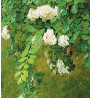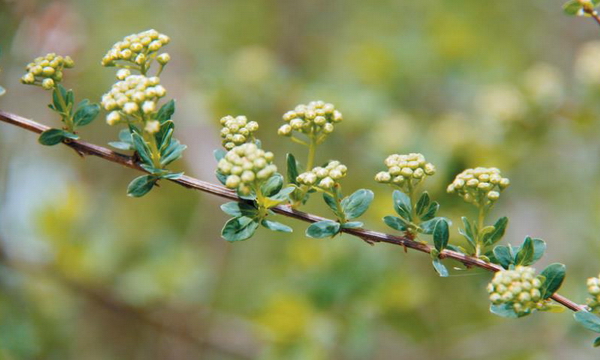 灌木,高达2m。幼枝无毛,有棱角,红褐色,老时灰褐色;冬芽长卵形,较叶柄稍长,外具2个尖长形鳞片,无毛。叶片椭圆形或长卵状倒披针形,长5-20mm,宽2.5-7mm,先端钝圆,有时具小突尖,基部楔形,全缘,不孕枝上叶较大,先端有时具2-3锯齿,两面无毛或背面稀具短柔毛;叶柄极短,无毛。伞形总状花序具较长总花梗,具 8-15花;花梗长3-12mm;苞片线形;花直径5-7mm;萼筒近钟状;萼片三角形,腹面密被短柔毛;花瓣白色,近圆形,先端钝圆;雄蕊约20,与花瓣近等长;花盘环状,有10圆形裂片;子房被短柔毛,花柱短于雄蕊。蓇葖果沿腹缝线被短柔毛或无毛,花柱生于背部顶端,倾斜开展,萼片宿存,直立或反折。花果期6-9月。
