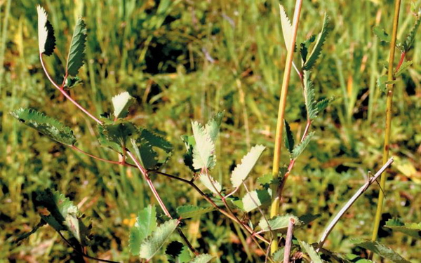 茎直立,有棱,无毛或基部有稀疏腺毛。基生叶为羽状复生,小叶4-6对;小叶片有短柄;托叶膜质,褐色,外面无毛或稀疏腺毛;小叶片卵形或长圆形,长1-7cm,宽0.5-3cm,先端圆钝,基部心形至浅心形,边缘有多数粗大、圆钝的锯齿;茎生叶较少,小叶片长圆形至长圆状披针形,狭长,基部微心形至圆形。穗状花序,紫色至暗紫色,从花序顶端向下开放;苞片2,膜质,披针形,先端渐尖至骤尖,比萼片短或近等长,背面及边缘有柔毛;裂片4,椭圆形至宽卵形;先端常具短尖头,紫红色;雄蕊4,花丝丝状与萼片近等长,柱头先端盘形。瘦果包藏在宿存萼筒内,倒卵状长圆形或近圆形,外面4棱。花果期7-10月。