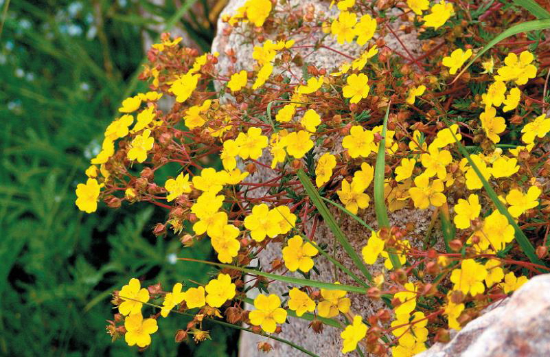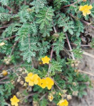 多年生草本,高12-40cm。根圆柱形,稍木质化。茎上升,稀直立,被紧贴或开展短柔毛。基生叶为奇数羽状复叶,具小叶7-11,长4-15cm;小叶无柄,长圆形或宽卵形,长1-3cm,边缘羽状深裂几达中脉,裂片带状披针形,边缘向下反卷,腹面伏生短柔毛或无毛,背面被白色绒毛,沿脉伏生绢状长柔毛;茎生叶与基生叶形状相似。伞房状聚伞花序;花梗长 1.5-2.5cm,被短柔毛;花直径1.2-1.5cm;萼片三角状卵形,先端急尖或渐尖,副萼片披针形或椭圆状披针形,先端钝圆,较萼片稍短或近等长,在果期增大;花瓣黄色,倒卵形,较萼片长;花柱近顶生,基部具乳头膨大,柱头稍扩大。瘦果平滑或具皱纹。花期5-8月。