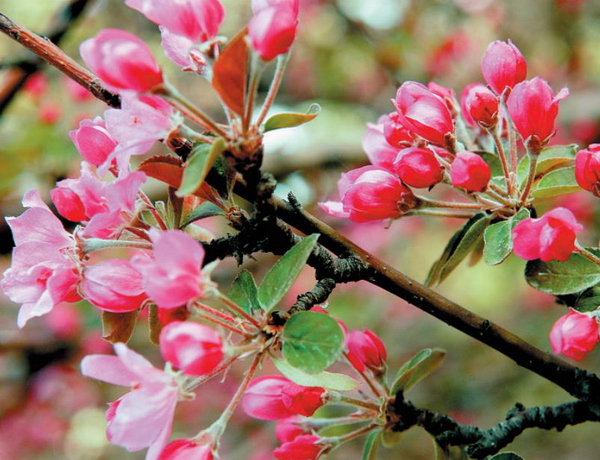 落叶乔木,高2-5m。小枝圆柱形,幼时密被绒毛,老枝紫褐色而无毛;冬芽卵形,密被短柔毛。叶片椭圆形至宽卵形,长2-10cm,宽1.6-5.5cm,先端锐尖,基部宽楔形或近圆形,边缘具圆锯齿,幼时两面密被短柔毛;托叶披针形或卵状披针形,全缘,密被短柔毛,早落。伞房花序具3-7花;花梗长1-2.5cm,密被绒毛;苞片膜质,全缘,被绒毛;萼筒密被绒毛;萼片三角状披针形,长6-8mm,两面密被绒毛;花瓣白色,宽倒卵形,基部具短爪;雄蕊多数,花丝长短不一;花柱5,基部合生,下部密被绒毛。果扁球形,大小、色泽因品种而异,顶端常隆起。花期5-6月,果期9-10月。