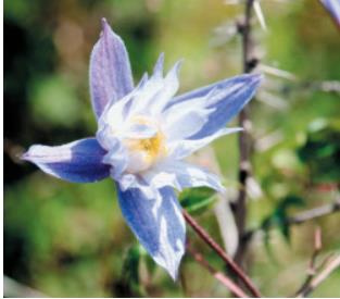 木质藤本,长1-2.5m。幼枝被毛。二回三出复叶,小叶片9枚,卵状披针形或菱状椭圆形,长1-4cm,宽0.6-1.4cm,两侧小叶片偏斜,小叶片边缘有锯齿或分裂;叶柄长2-3.5cm,疏被柔毛。花单生于当年分枝顶端;花梗长6-11cm,嫩时有毛;花萼钟状,直径3-5cm;萼片4,蓝色或淡紫色,窄卵形或卵状披针形,长3-4cm,宽0.7-1.5cm,两面被短柔毛,边缘密被柔毛,具褐色网状细脉;退化雄蕊花瓣状,披针形或线状披针形,与萼片等长或稍短,外面被短柔毛或绒毛,里面无毛;雄蕊长1.5cm,外面被短柔毛,花药药隔被毛;心皮多数,子房倒卵形,花柱密被白色长柔毛。瘦果被毛,宿存花柱被淡灰色长柔毛。花果期6-8月。