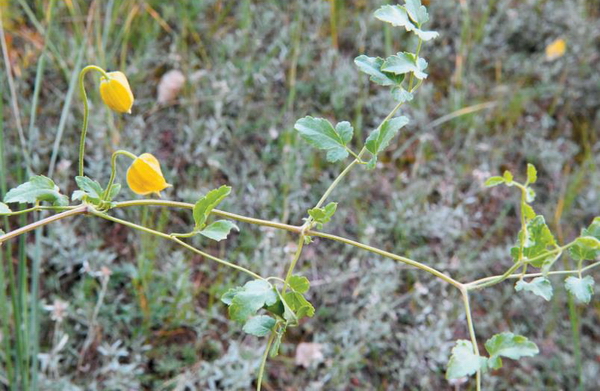 藤本。茎无毛,有明显的棱。一回羽状复叶,有5-7小叶;小叶片基部常2-3浅裂或深裂,侧生裂片小,中裂片较大,宽椭圆形、椭圆形或长椭圆形,长2-4cm,宽1.3-2cm,顶端钝或圆形,少数渐尖,基部圆楔形至圆形,边缘有不整齐浅锯齿,裂片常2-3浅裂或不裂,叶两面光滑无毛。花单生或2-5朵簇生;花梗长5-10cm;苞片大,常2-3浅裂,中裂片较大,宽椭圆形或椭圆形、狭椭圆形,长1.5-2.8cm,全缘或有少数牙齿;萼片4-5,黄色,斜上展,椭圆形,长椭圆形或宽披针形,长1.8-2.5cm,宽0.7-1.1cm,顶端锐尖成小尖头,外面边缘有短绒毛,内面无毛;花丝下面扁平,被有柔毛,花药无毛。未成熟的瘦果倒卵形、椭圆形,被柔毛,长约3mm,宿存花柱被长柔毛。花期6-8月,果期7-10月。