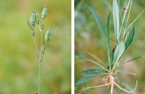直立草本,高40-60cm。丛生或单生,密被短柔毛,通常下部分枝或不分枝。叶线形或线状披针形、匙形,长2-5cm,宽2-4mm,茎下部的叶基部渐狭呈柄状,顶端锐尖;茎上部的叶基部较宽,顶端渐尖,两面密被短柔毛。花序聚伞形或圆锥状聚伞形,具数花至多花;苞片披针形或线状披针形,密被短柔毛,长1-2cm;花梗长0.5-1.5cm,密被短柔毛;萼筒状,外面密被短柔毛,长8-9mm,顶端具5齿,萼脉10,绿色或黑色;花瓣5,白色;或上部紫红色,等于或微短于萼,瓣片顶部2深裂,喉部具2椭圆形小鳞片;雄蕊10,花丝线形,稍短于花瓣;子房卵圆形,花柱3,线形。蒴果卵圆形,与萼片近等长,3瓣裂。种子肾形,表面具瘤状突起,黑色。花期6-7月,果期8-9月。