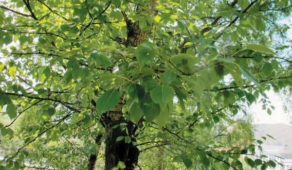 乔木,高达30m。树冠阔卵形;树皮初光滑,灰绿色,老时暗灰色,沟裂。枝圆柱形,有时具角棱,幼时橄榄绿色,后变为橙黄色至灰黄色,无毛。芽长圆锥形,无毛,紫褐色或黄褐色,多黏质。短枝叶卵形、椭圆状卵形、椭圆形或狭卵形,长5-10cm,宽3.5-7cm,最宽处在中部以下,顶端渐尖或突渐尖,基部圆形,稀近心形或阔楔形,边缘具腺圆锯齿,表面亮绿色,背面绿白色,叶脉两面隆起,尤以背面为明显,具侧脉5-7条,无毛,叶柄圆柱形,长2-7cm,无毛;长枝或萌枝叶较大,卵状长圆形,长10-20cm,基部常微心形;叶柄圆柱形,长1-3cm,无毛。雄花序长5-6cm,雄蕊30-35,苞片条裂;雌花序长4-5cm柱头2-4裂;果序长10-20cm。蒴果卵圆形,长6-9mm,3-4瓣裂,稀2瓣裂。花期3-5月,果期5-7月。