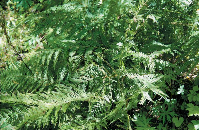 植株高30-50cm。根状茎丛生,短而直立,密被红棕色、长圆披针形鳞片。叶簇生;柄长8-18cm,粗约0.5cm,棕褐色,基部被棕色、大、卵圆形鳞片,向上渐疏;叶片长圆状披针形,长20-35cm,宽8-10cm,先端钝尖头,基部略狭缩,二回羽状(偶有三回羽裂);侧生羽片18-20对,中部羽片长3.5-5cm,宽1.-2cm,披针形,钝尖头,基部最宽,无柄,基部一对羽片长2.5-4cm,卵圆形披针形,羽状深裂;小羽片8-10对,斜展,彼此以狭间隔分开,长圆形,先端钝圆,具整齐的三角形齿牙,基部与羽轴合生,边缘通常具圆齿(基部数对偶为羽裂);叶干后黄绿色,纸质;叶脉两面明显;叶轴、羽轴密被棕色、披针形和线状披针形鳞片,少有纤维状鳞毛;羽片上面光滑,下面具纤维状鳞毛。孢子囊群生于小羽轴两侧,中等大;囊群盖棕色,膜质,边缘有不整齐的齿牙。