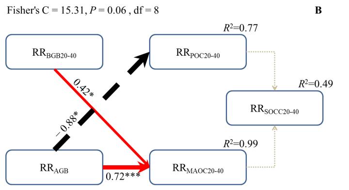 高寒草甸土壤有机碳及其物理组分响应比的结构方程模型